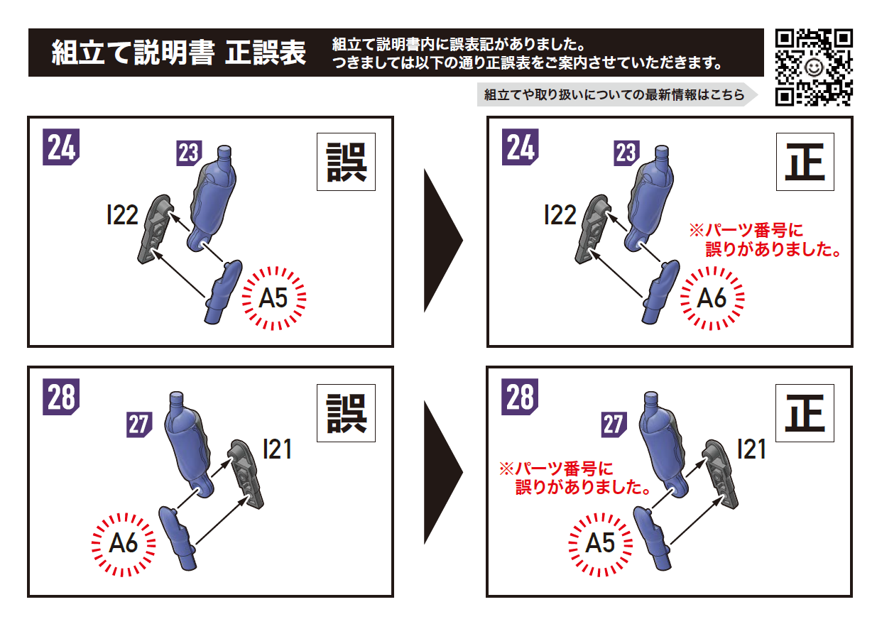 An error was discovered in step 24 and step 28 of the assembly instructions.