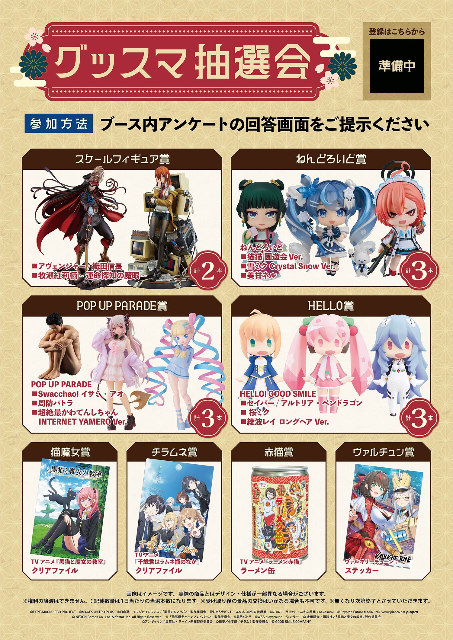 ねんどろいどやPOP UP PARADE等最新のフィギュア展示、キャンペーンを実施。更には新作アニメ作品の紹介などを行います。