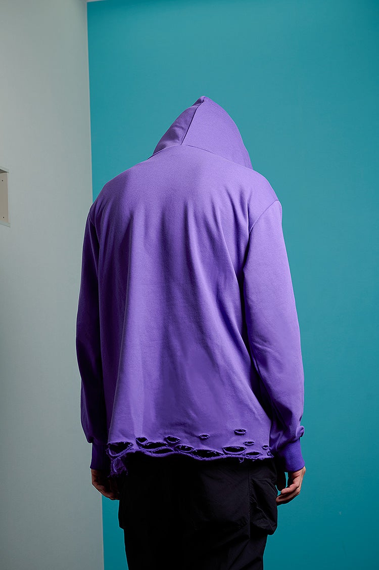ネオングリーンの「NULL」の文字とデジタルなパープルの炎プリントに加え、裾のダメージ加工も再現しております!